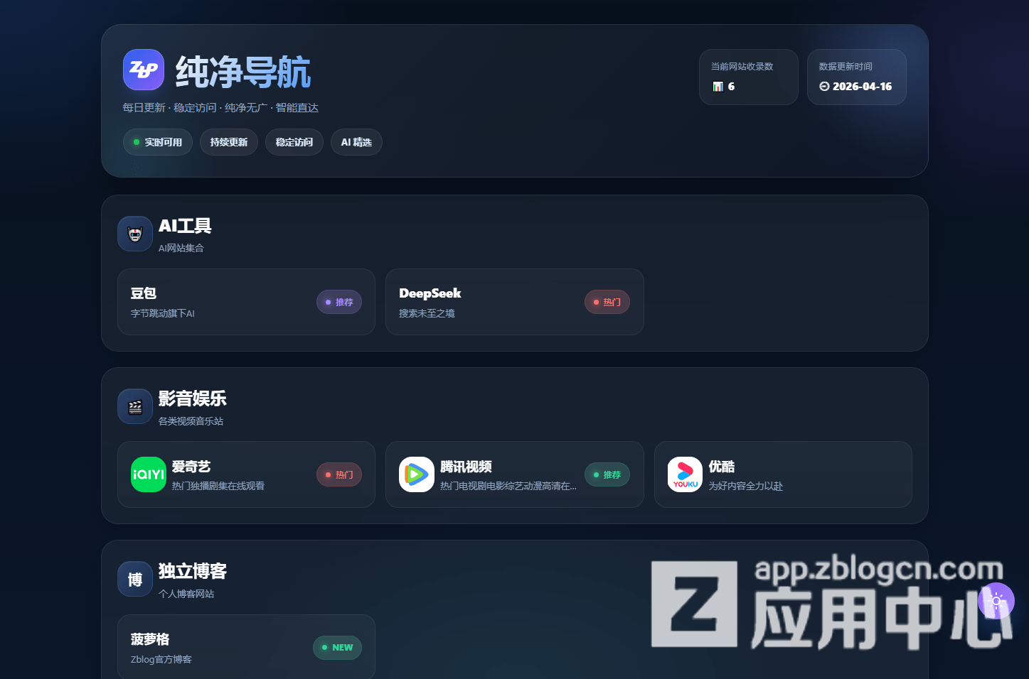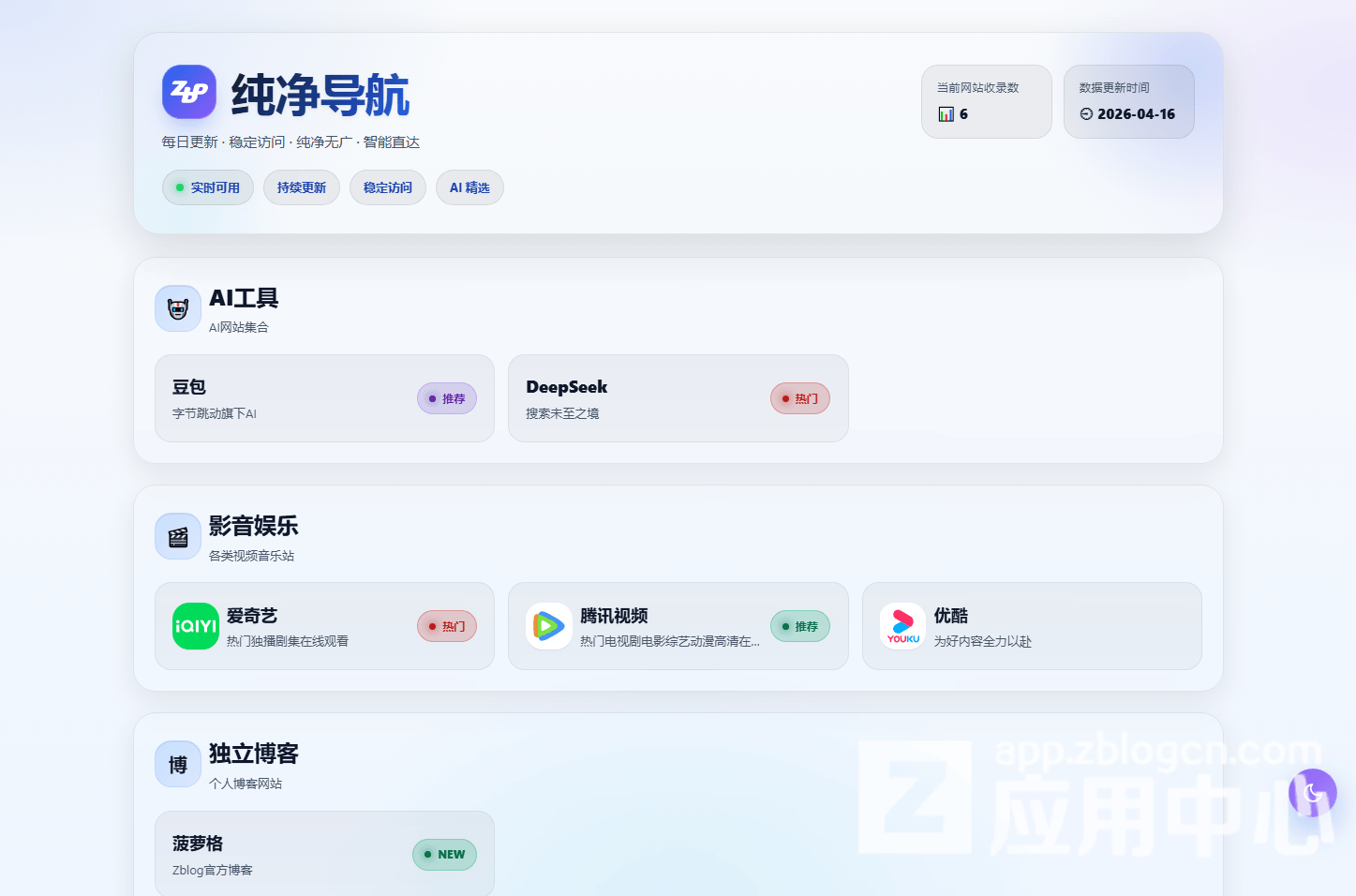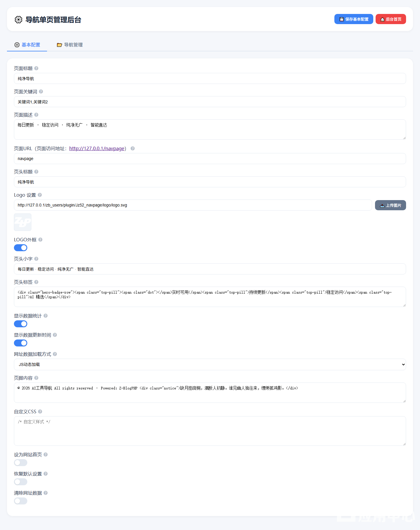 一个轻量级单页版导航站插件,可作为导航单页、独立友情链接页、独立导航站、网址发布页等使用